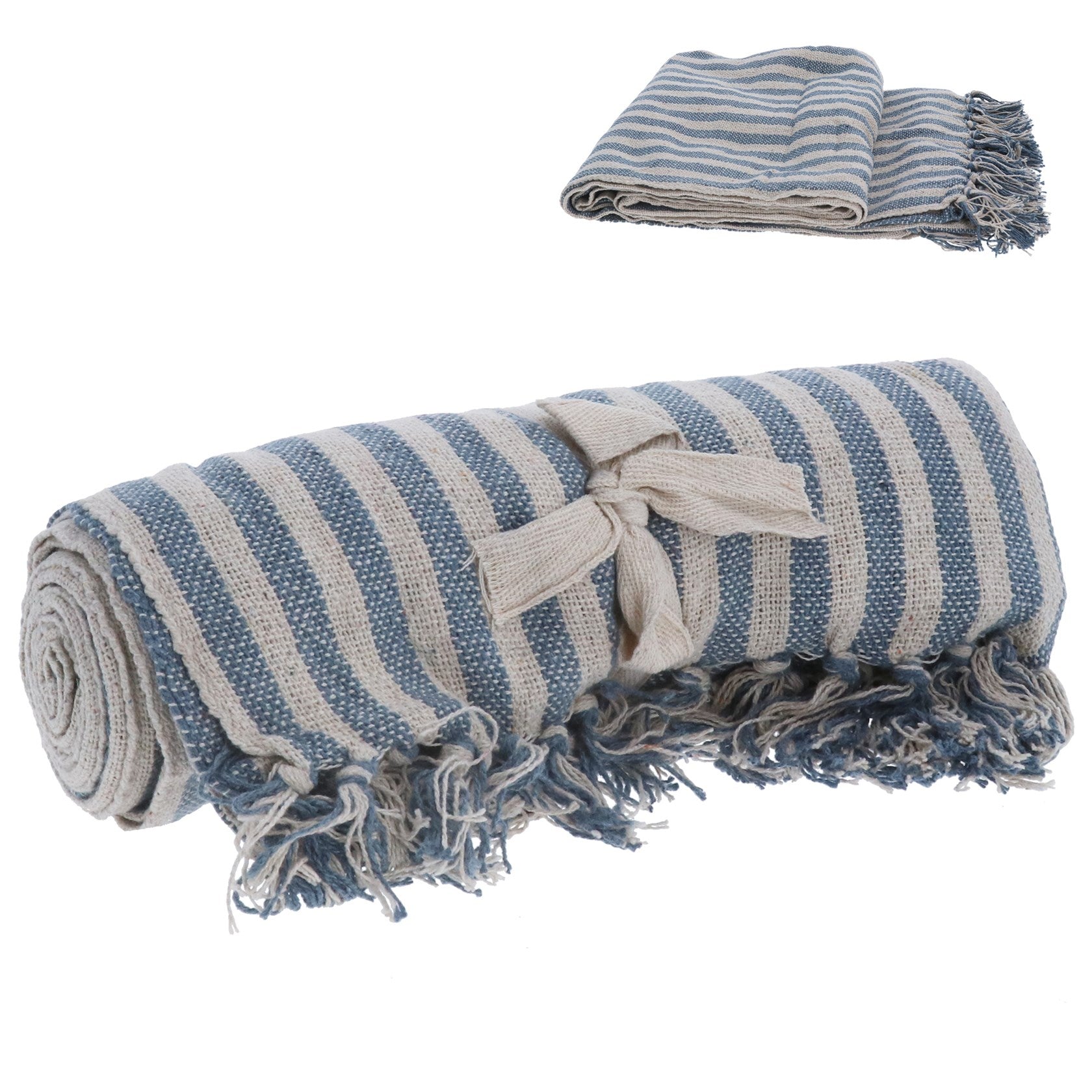 • This gorgeous woven throw with stripe detail is created with a colourway of white and Sky Blue.