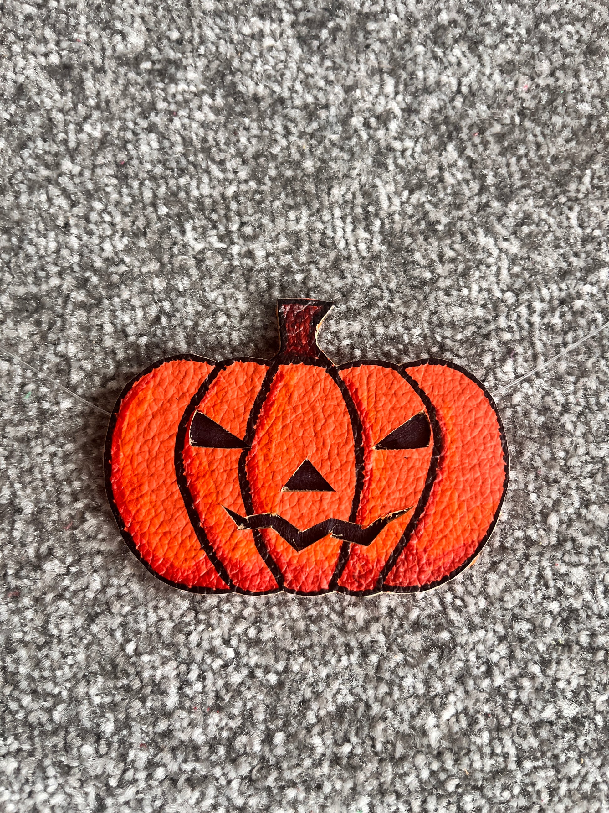 7 x orange leather pumpkins on catgut (clear string).